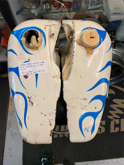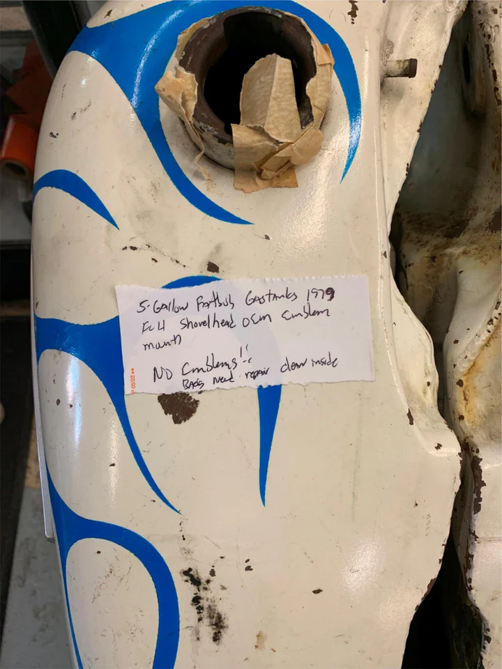 5 Gallon Fatboy Gas tank 1979 Flh Shovelhead Oem Emblem with mount NO EMBLEMS they will be removed