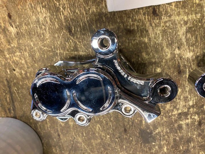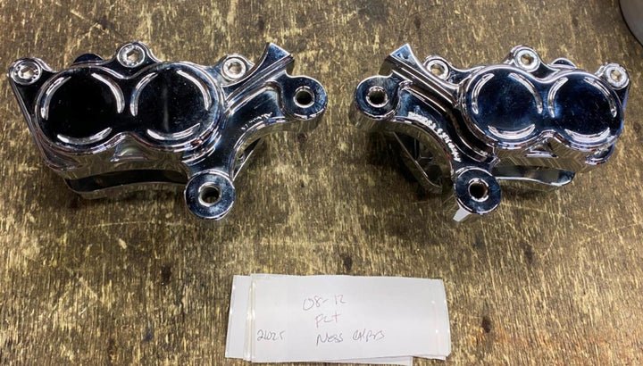 Arlen Ness Chrome Front Dual Disc Four-Piston Calipers 2008^ Touring flh Dyna Chopper Ness-Tech