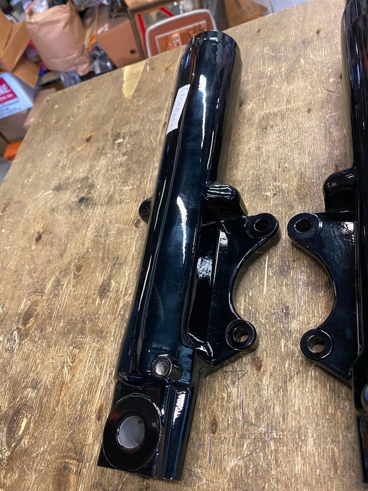 Black Lower Front Fork Legs Sliders 41mm FLH Ultra Glide 1984-1999 Harley Bagger powdercoated no exchange.