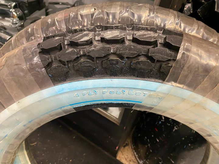 Beck coker Vtg Wide White Tires Indian Harley Knucklehead 4.00×18 Tread Old Skool Triumph bsa  by coker. great old look selling a pair!  just unwrapped a spot to show tread……