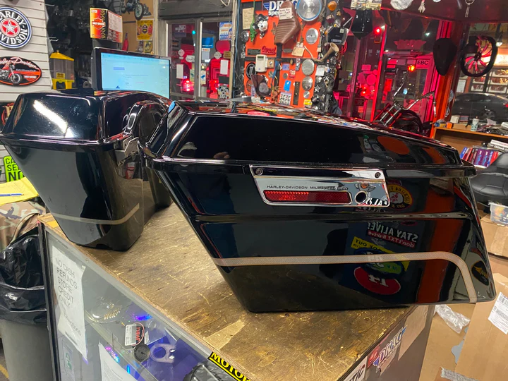 Harley Touring 100th Anniversary Saddlebags Black OEM ASsy Nice FLH ultra Classic