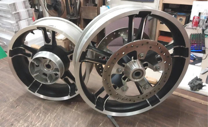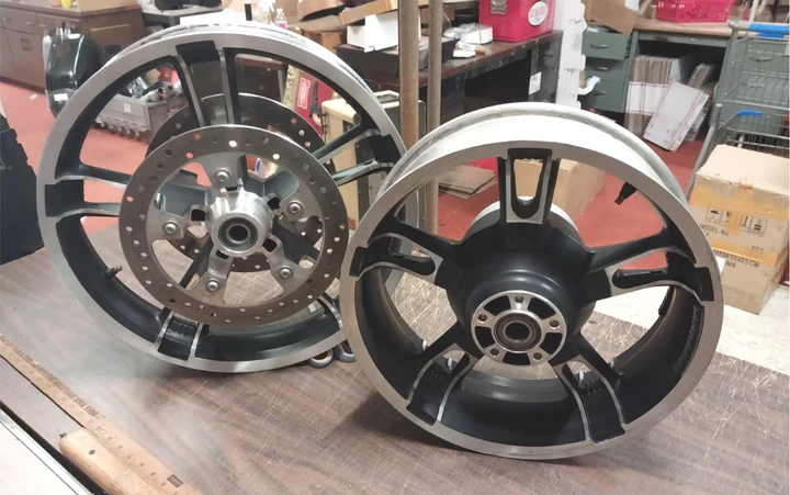 Pair Enforcer Mag Wheels Harley Bagger FLHX 3.50 x19 5.00×16 W Rotors street road Glide Road King new takeoffs with brake rotors….. look great powdercoated black!