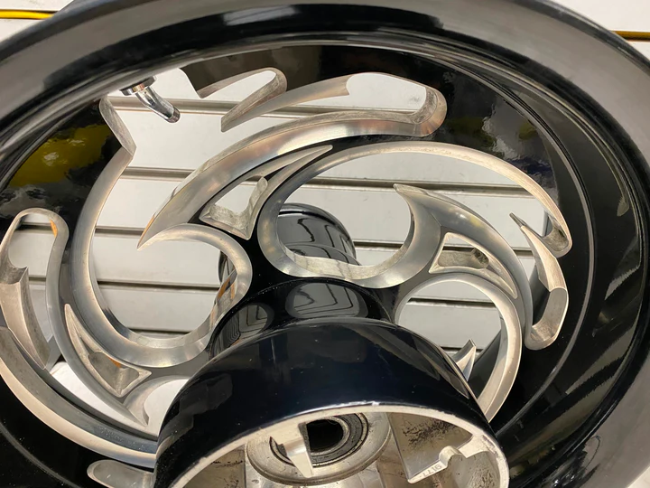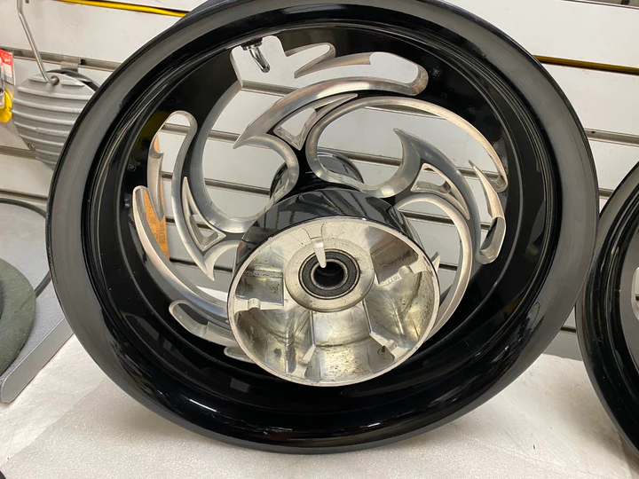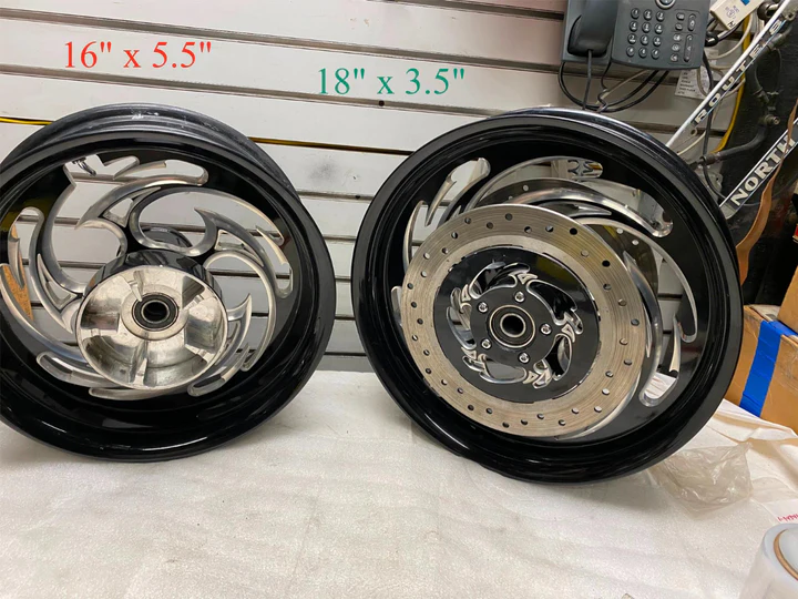 with matching front rotors… great looking set of wheels!!! 25mm axles for cush drive.. took off a 2016 flhxs
