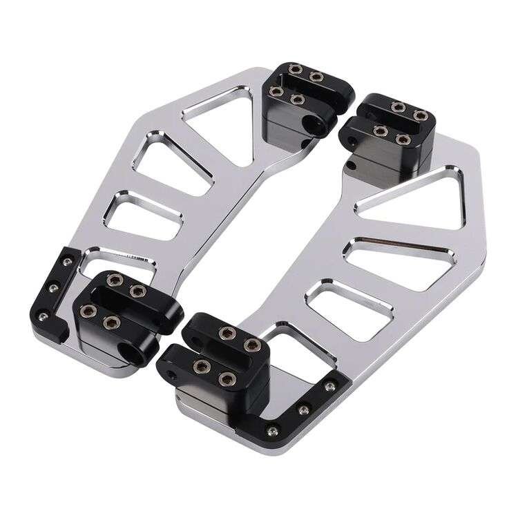 Dress up your bike with a set of Thrashin Supply Co Apex Floorboards. Beautifully machined here in the USA from billet aluminum, with replaceable delrin blocks. Thrashin has also made a slew of ways for you to even further customize these floor boards, everything from making them larger, to adjusting their height for more clearance!